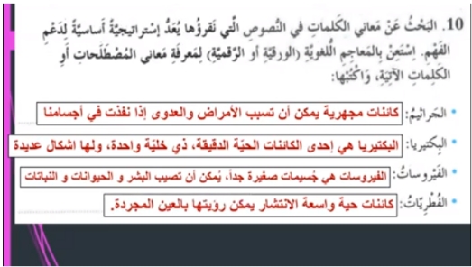 بحث عن البكتيريا والفيروسات اول ثانوي