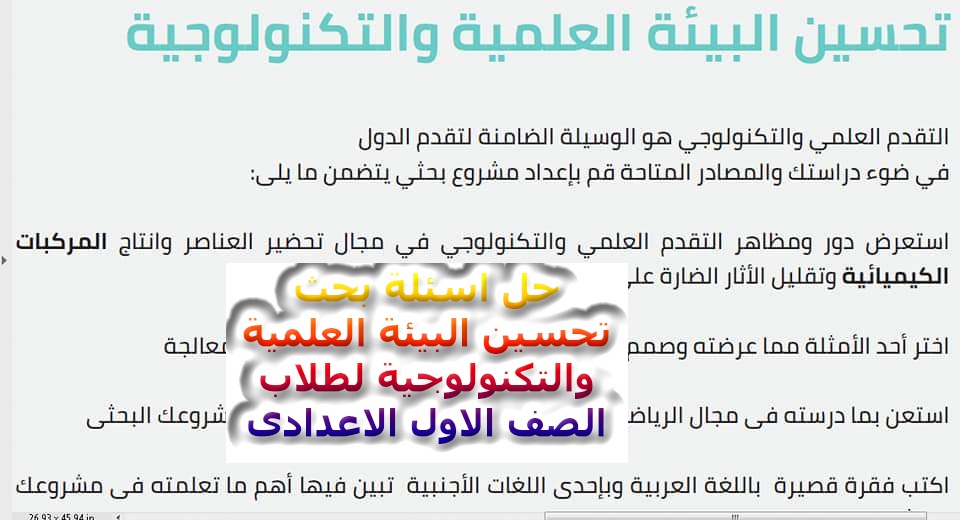حل اسئلة بحث تحسين البيئة العلمية والتكنولوجية لطلاب الصف الاول الاعدادى