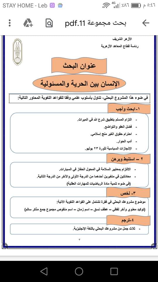 مشروع بحث كامل لطلاب الصف الثالث الإعدادى بعنوان الإنسان بين الحرية و المسئولية