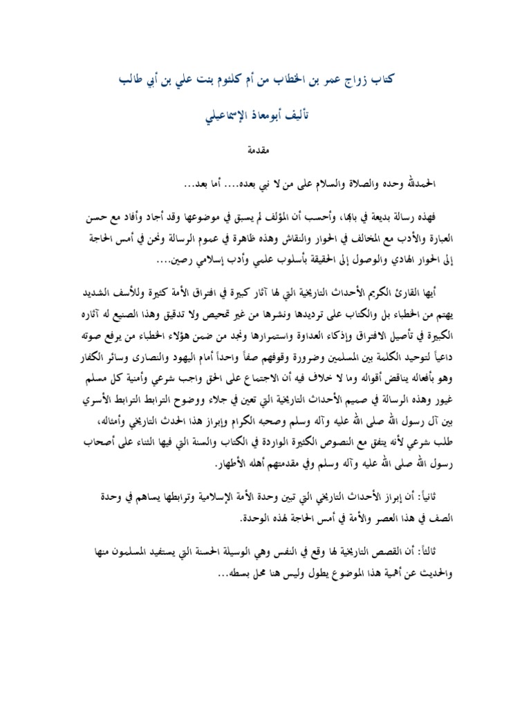 كتاب زواج عمر بن الخطاب من أم كلثوم بنت علي بن أبي طالب