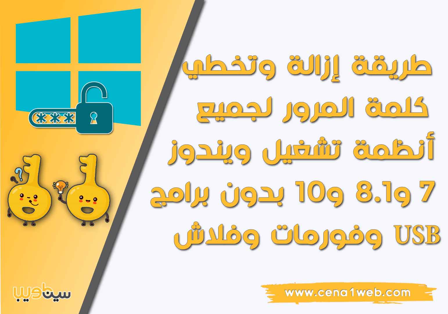 طريقة إزالة وتخطي كلمة المرور لجميع أنظمة تشغيل ويندوز 7 و8 1 و 10 بدون برامج وفورمات وفلاش Usb سينا ويب