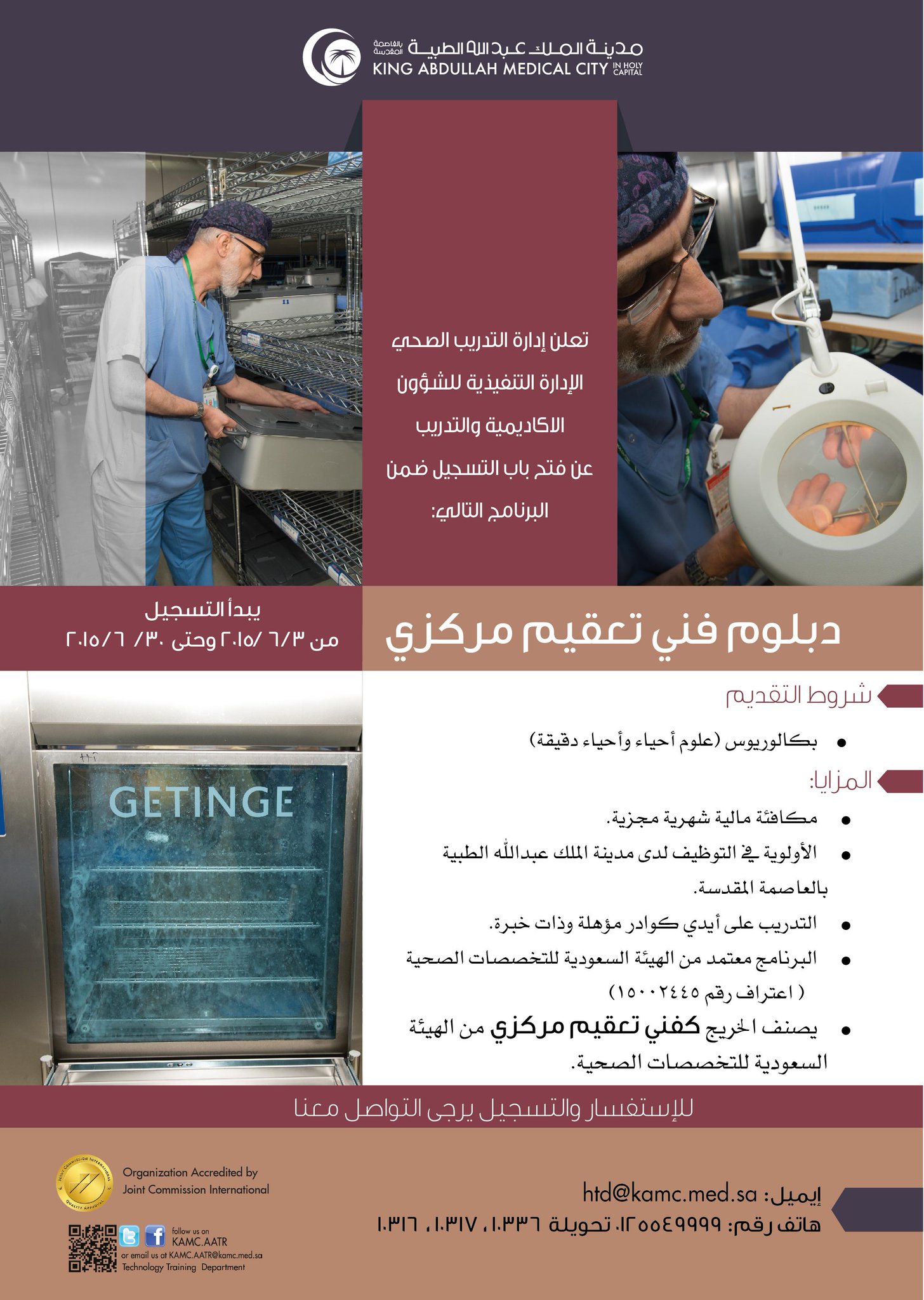 مدينـة المـلك عبـدالله الطبيـة Di Twitter Kamc تفتح باب التسجيل لدبلوم فني تعقيم مركزي معتمد من الهيئة السعودية للتخصصات الصحية تدريب خريج أحياء Http T Co Qvwrh2bnzg