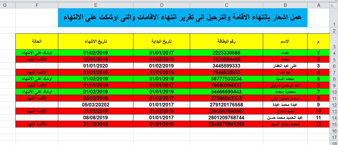 هل هناك طريقة تجعل في حال إقتربت الأوراق الرسمية من الإنتهاء تخرج لنا رسالة تخبرنا بقرب الإنتهاء حتى لو كان مغلق هذا الملف مع الشكر.